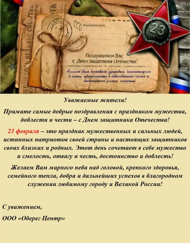 Примите самые добрые поздравления с праздником мужества, доблести и чести – с Днем защитника Отечества!